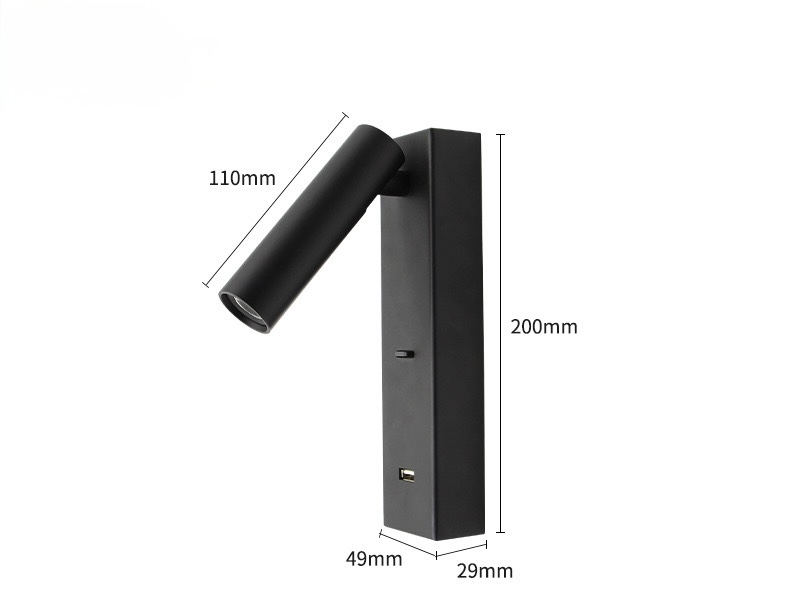 Тип товару: Бра Матеріал: Метал Тип лампи: Led/3000K Потужність: 3W Висота: 20 см Ширина: 5 см На корпусі вимикач та USB вхід